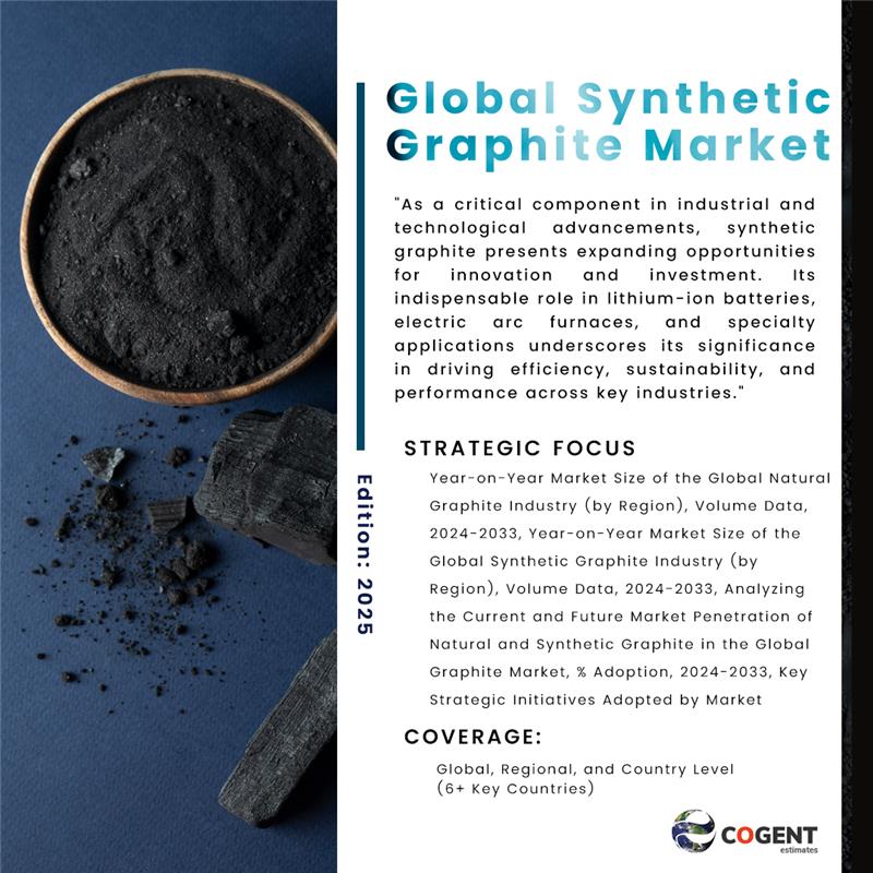 The global synthetic graphite market is gaining momentum due to its growing relevance in advanced manufacturing, clean energy, and electric vehicle (EV) technologies. Synthetic graphite is prized for its superior electrical conductivity, thermal resistance, and strength-to-weight ratio—properties essential to energy-intensive and high-performance applications.